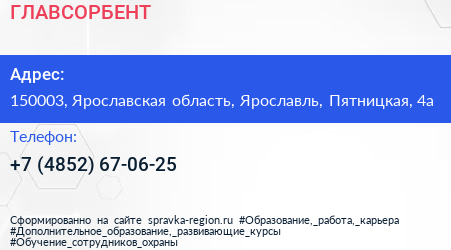 ГЛАВСОРБЕНТ по адресу 150003, Ярославская область, Ярославль, Пятницкая, 4а в дальнейшем Организация, размещена в следующих категориях: