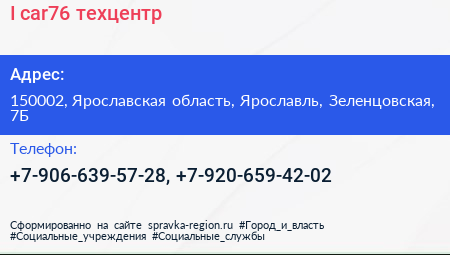 I-car76, техцентр по адресу 150002, Ярославская область, Ярославль, Зеленцовская, 7Б в дальнейшем Организация, размещена в следующих категориях: