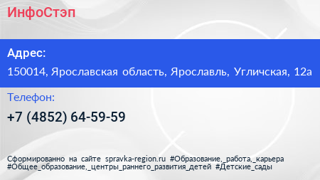 ИнфоСтэп по адресу 150014, Ярославская область, Ярославль, Угличская, 12а в дальнейшем Организация, размещена в следующих категориях: