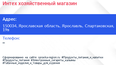 Интех, хозяйственный магазин по адресу 150034, Ярославская область, Ярославль, Спартаковская, 19в в дальнейшем Организация, размещена в следующих категориях:
