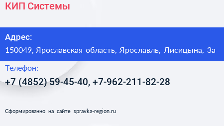 КИП Системы по адресу 150049, Ярославская область, Ярославль, Лисицына, 3а в дальнейшем Организация, размещена в следующих категориях:
