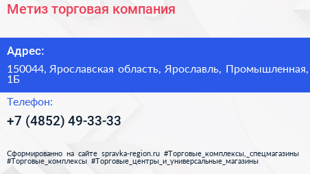 Метиз, торговая компания по адресу 150044, Ярославская область, Ярославль, Промышленная, 1Б в дальнейшем Организация, размещена в следующих категориях: