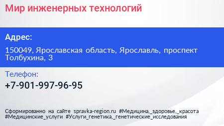 Мир инженерных технологий по адресу 150049, Ярославская область, Ярославль, проспект Толбухина, 3 в дальнейшем Организация, размещена в следующих категориях: