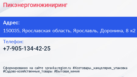 Пикэнергоинжиниринг по адресу 150035, Ярославская область, Ярославль, Доронина, 8 к2 в дальнейшем Организация, размещена в следующих категориях: