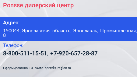 Ponsse, дилерский центр по адресу 150044, Ярославская область, Ярославль, Промышленная, 8 в дальнейшем Организация, размещена в следующих категориях: