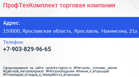 ПрофТехКомплект, торговая компания по адресу 150000, Ярославская область, Ярославль, Нахимсона, 21а в дальнейшем Организация, размещена в следующих категориях: