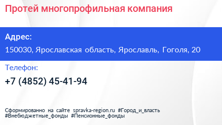 Протей, многопрофильная компания по адресу 150030, Ярославская область, Ярославль, Гоголя, 20 в дальнейшем Организация, размещена в следующих категориях: