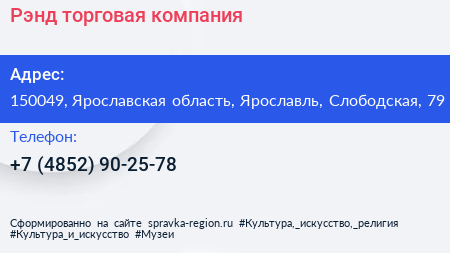 Рэнд, торговая компания по адресу 150049, Ярославская область, Ярославль, Слободская, 79 в дальнейшем Организация, размещена в следующих категориях: