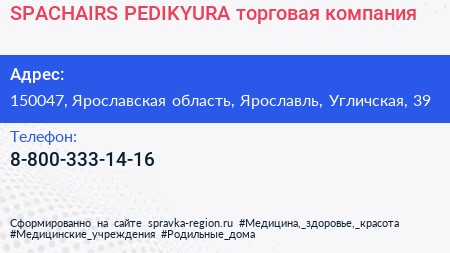 SPACHAIRS-PEDIKYURA, торговая компания по адресу 150047, Ярославская область, Ярославль, Угличская, 39 в дальнейшем Организация, размещена в следующих категориях: