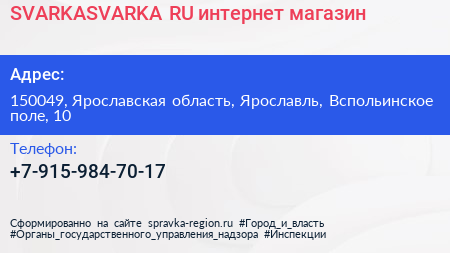 SVARKASVARKA.RU, интернет-магазин по адресу 150049, Ярославская область, Ярославль, Вспольинское поле, 10 в дальнейшем Организация, размещена в следующих категориях:
