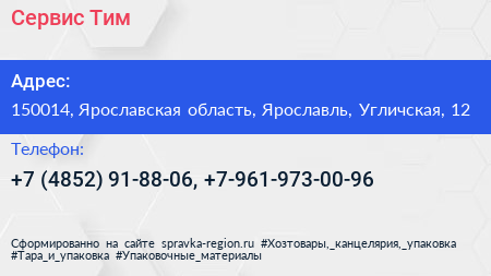 Сервис-Тим по адресу 150014, Ярославская область, Ярославль, Угличская, 12 в дальнейшем Организация, размещена в следующих категориях:
