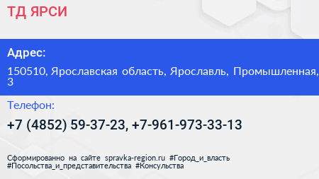ТД ЯРСИ по адресу 150510, Ярославская область, Ярославль, Промышленная, 3 в дальнейшем Организация, размещена в следующих категориях: