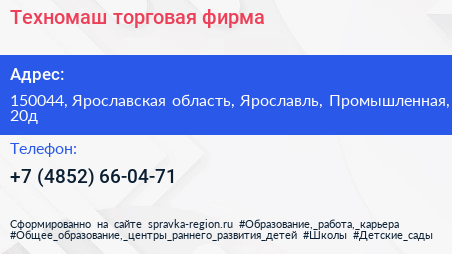 Техномаш, торговая фирма по адресу 150044, Ярославская область, Ярославль, Промышленная, 20д в дальнейшем Организация, размещена в следующих категориях: