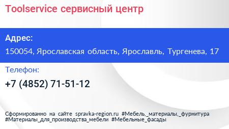 Toolservice, сервисный центр по адресу 150054, Ярославская область, Ярославль, Тургенева, 17 в дальнейшем Организация, размещена в следующих категориях: