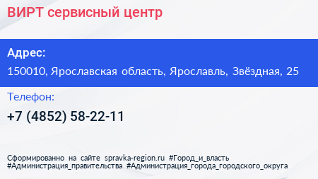 ВИРТ, сервисный центр по адресу 150010, Ярославская область, Ярославль, Звёздная, 25 в дальнейшем Организация, размещена в следующих категориях:
