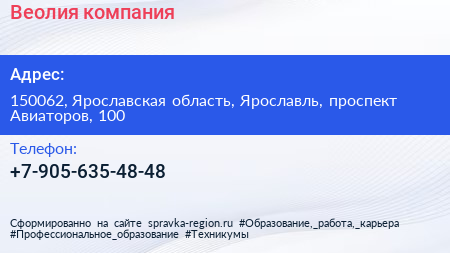 Веолия, компания по адресу 150062, Ярославская область, Ярославль, проспект Авиаторов, 100 в дальнейшем Организация, размещена в следующих категориях: