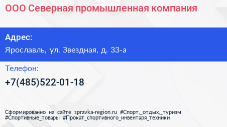 ООО «Северная промышленная компания» по адресу Ярославль, ул. Звездная, д. 33-а в дальнейшем Организация, размещена в следующих категориях: