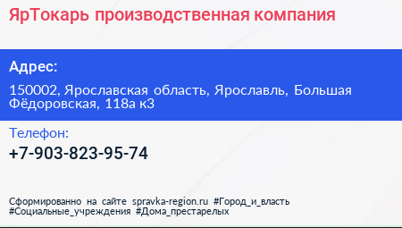 ЯрТокарь, производственная компания по адресу 150002, Ярославская область, Ярославль, Большая Фёдоровская, 118а к3 в дальнейшем Организация, размещена в следующих категориях: