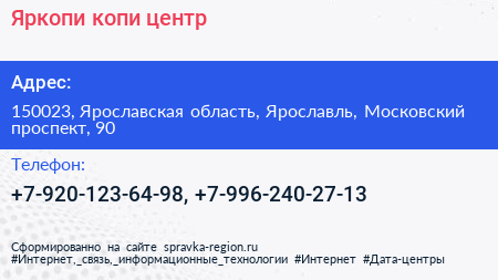 Яркопи, копи-центр по адресу 150023, Ярославская область, Ярославль, Московский проспект, 90 в дальнейшем Организация, размещена в следующих категориях:
