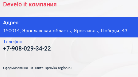 Develo, it-компания по адресу 150014, Ярославская область, Ярославль, Победы, 43 в дальнейшем Организация, размещена в следующих категориях: