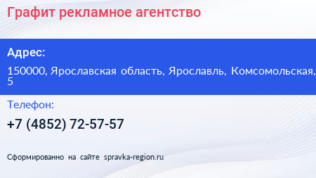 Графит, рекламное агентство по адресу 150000, Ярославская область, Ярославль, Комсомольская, 5 в дальнейшем Организация, размещена в следующих категориях: