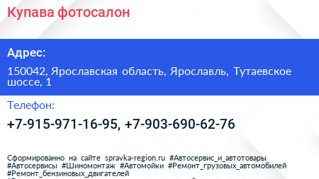 Купава, фотосалон по адресу 150042, Ярославская область, Ярославль, Тутаевское шоссе, 1 в дальнейшем Организация, размещена в следующих категориях: