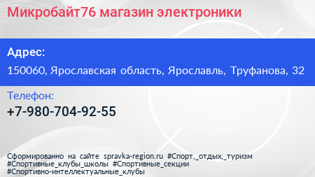 Микробайт76, магазин электроники по адресу 150060, Ярославская область, Ярославль, Труфанова, 32 в дальнейшем Организация, размещена в следующих категориях: