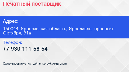 Печатный поставщик по адресу 150044, Ярославская область, Ярославль, проспект Октября, 91а в дальнейшем Организация, размещена в следующих категориях: