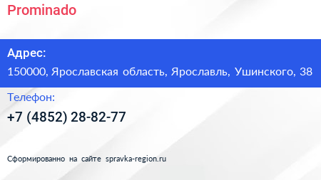 Prominado по адресу 150000, Ярославская область, Ярославль, Ушинского, 38 в дальнейшем Организация, размещена в следующих категориях: