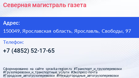 Северная магистраль, газета по адресу 150049, Ярославская область, Ярославль, Свободы, 97 в дальнейшем Организация, размещена в следующих категориях: