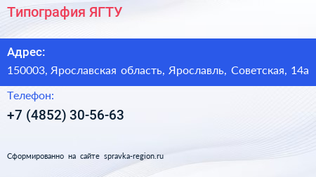 Типография ЯГТУ по адресу 150003, Ярославская область, Ярославль, Советская, 14а в дальнейшем Организация, размещена в следующих категориях: