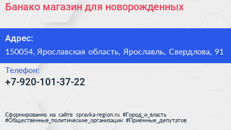 Банако, магазин для новорожденных по адресу 150054, Ярославская область, Ярославль, Свердлова, 91 в дальнейшем Организация, размещена в следующих категориях: