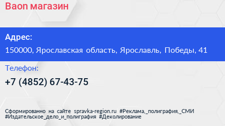 Baon, магазин по адресу 150000, Ярославская область, Ярославль, Победы, 41 в дальнейшем Организация, размещена в следующих категориях: