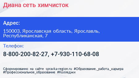 Диана, сеть химчисток по адресу 150003, Ярославская область, Ярославль, Республиканская, 7 в дальнейшем Организация, размещена в следующих категориях:
