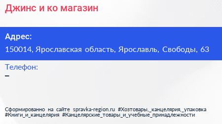 Джинс и ко, магазин по адресу 150014, Ярославская область, Ярославль, Свободы, 63 в дальнейшем Организация, размещена в следующих категориях: