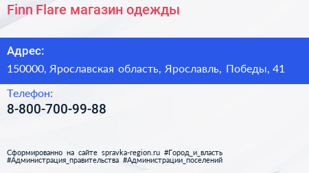 Finn Flare, магазин одежды по адресу 150000, Ярославская область, Ярославль, Победы, 41 в дальнейшем Организация, размещена в следующих категориях: