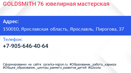 GOLDSMITH-76, ювелирная мастерская по адресу 150010, Ярославская область, Ярославль, Пирогова, 37 в дальнейшем Организация, размещена в следующих категориях: