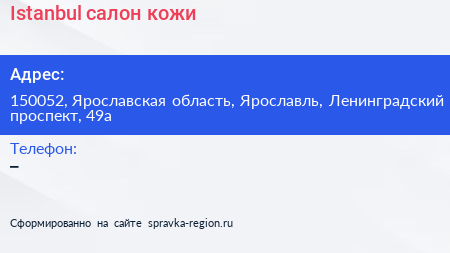 Istanbul, салон кожи по адресу 150052, Ярославская область, Ярославль, Ленинградский проспект, 49а в дальнейшем Организация, размещена в следующих категориях: