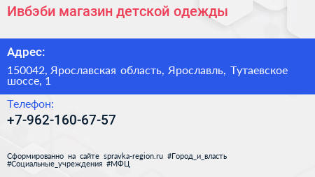 Ивбэби, магазин детской одежды по адресу 150042, Ярославская область, Ярославль, Тутаевское шоссе, 1 в дальнейшем Организация, размещена в следующих категориях: