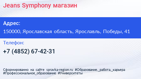 Jeans Symphony, магазин по адресу 150000, Ярославская область, Ярославль, Победы, 41 в дальнейшем Организация, размещена в следующих категориях: