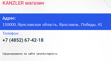 KANZLER, магазин по адресу 150000, Ярославская область, Ярославль, Победы, 41 в дальнейшем Организация, размещена в следующих категориях: