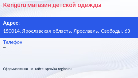 Kenguru, магазин детской одежды по адресу 150014, Ярославская область, Ярославль, Свободы, 63 в дальнейшем Организация, размещена в следующих категориях: