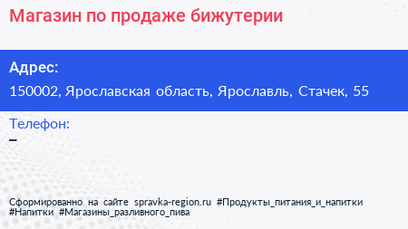 Магазин по продаже бижутерии по адресу 150002, Ярославская область, Ярославль, Стачек, 55 в дальнейшем Организация, размещена в следующих категориях: