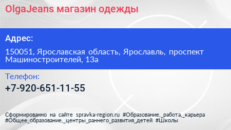 OlgaJeans, магазин одежды по адресу 150051, Ярославская область, Ярославль, проспект Машиностроителей, 13а в дальнейшем Организация, размещена в следующих категориях: