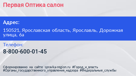 Первая Оптика, салон по адресу 150521, Ярославская область, Ярославль, Дорожная улица, 6а в дальнейшем Организация, размещена в следующих категориях:
