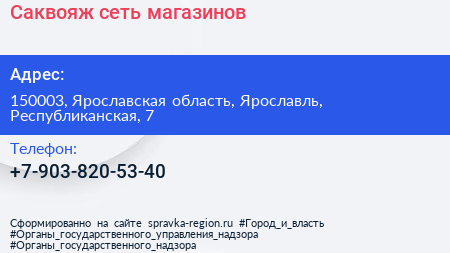 Саквояж, сеть магазинов по адресу 150003, Ярославская область, Ярославль, Республиканская, 7 в дальнейшем Организация, размещена в следующих категориях:
