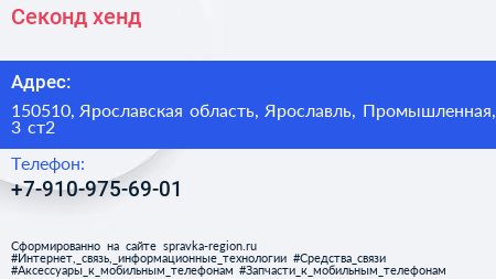 Секонд-хенд по адресу 150510, Ярославская область, Ярославль, Промышленная, 3 ст2 в дальнейшем Организация, размещена в следующих категориях: