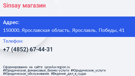 Sinsay, магазин по адресу 150000, Ярославская область, Ярославль, Победы, 41 в дальнейшем Организация, размещена в следующих категориях: