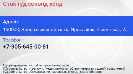 Сток гуд, секонд-хенд по адресу 150003, Ярославская область, Ярославль, Советская, 75 в дальнейшем Организация, размещена в следующих категориях: