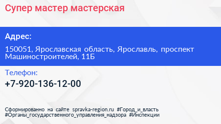 Супер мастер, мастерская по адресу 150051, Ярославская область, Ярославль, проспект Машиностроителей, 11Б в дальнейшем Организация, размещена в следующих категориях: